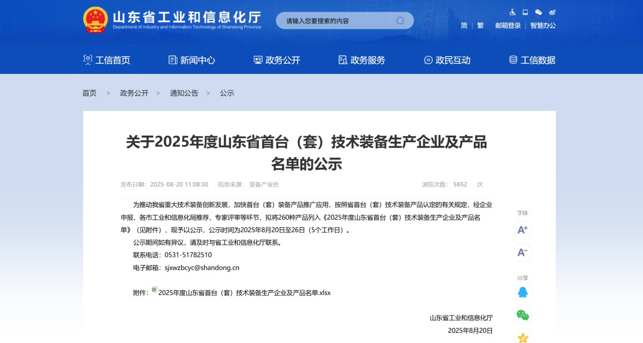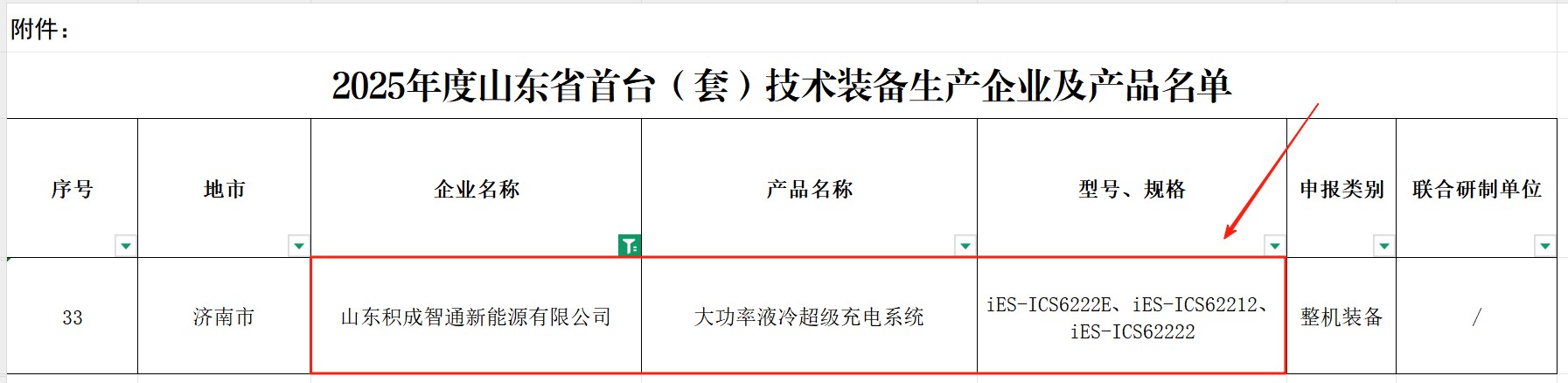 为推动我省重大技术装备创新发展,加快首台(套)装备产品推广应用。近日,山东省工业和信息化厅发布了《2025年度山东省首台(套)技术装备生产企业及产品名单公示》,积成智通自主研发的“大功率液冷超充系统”凭借先进的技术实力与创新成果成功入选。